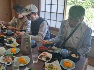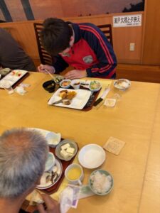 朝食はバイキング、朝からみんな元気いっぱい、モリモリ食べます!