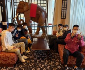 ホテルのロビーで部屋ごとの記念撮影を撮りました。