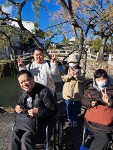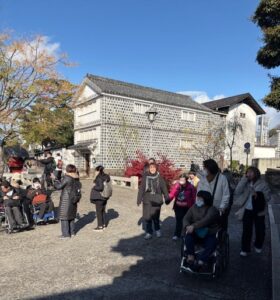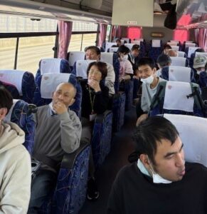 今回の行き先は岡山県倉敷市・・・出発前からテンション爆上がり・・・一路バスに乗ってみんなで出発!!利用者・職員、総数29名でいざ出発!!