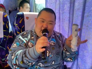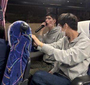 バスの中ではカラオケで熱唱!