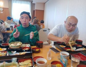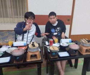 一泊旅行・・・本当にみんなで楽しく過ごしました。利用者のみなさんの素敵な笑顔にあふれた二日間でした!帰ってきてからも「一泊旅行、楽しかった!」との声がたくさん聞けましたね。